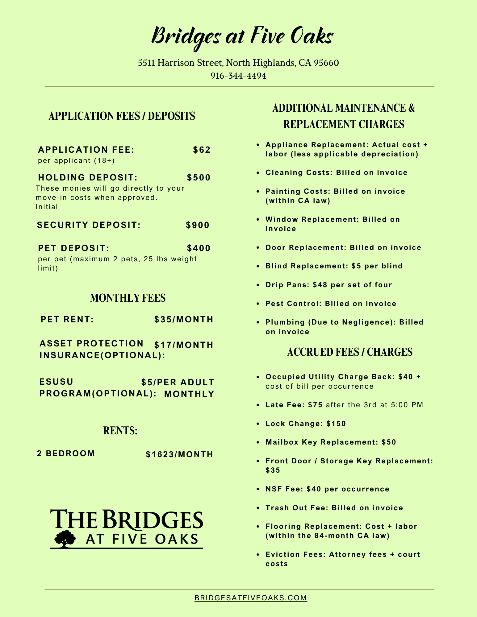 Take a virtual stroll through Bridges at Five Oaks and picture yourself enjoying a lifestyle that balances comfort and simplicity. Our community is designed to help you feel at home, offering a thoughtful mix of in-home features and shared spaces to enhance your everyday experience. Located near popular destinations, Bridges at Five Oaks keeps you connected to everything you need. Browse our floor plans to find the right fit for your lifestyle. Every element of our apartments is crafted with your ease and enjoyment in mind. Start your next chapter at Bridges at Five Oaks today!